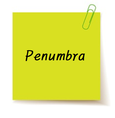 Penumbra : (전문용어)반그늘, 반그림자, (부분 일식/월식의)반영, 그림자, 어두운면, 그늘, 주변부, 테두리, 도시와 외각사이 애매한 지역, 불확실한 영역, 애매한것, 불확실한 것, 감춰진 것, 둘러싸여진 것