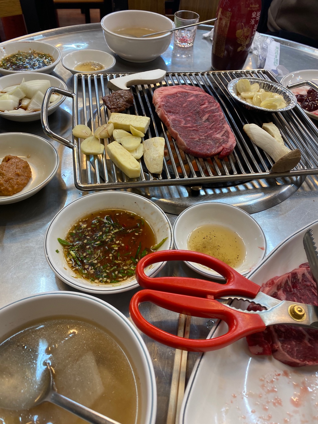 갈빗살 마블링을 보라.. 갈빗살이 양도 적고 제일 비쌌던 거 같다. 그래도 맛은 정말 좋았다 ㅠㅠ