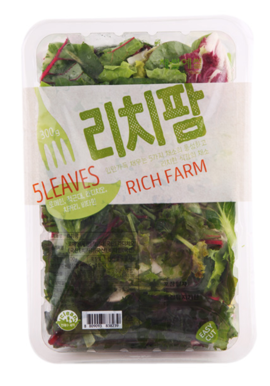 홈플러스에서 판매되는 샐러드 팩 중 가장 좋아하는 리치팜 샐러드 팩이다. 중량은 300g이다. 꽤 많은 양이다. 하나 구매를 하면 3~4번 정도 나눠 먹을 수 있다!! 무엇보다도 채소들 구성이 너~~ 무 좋다.