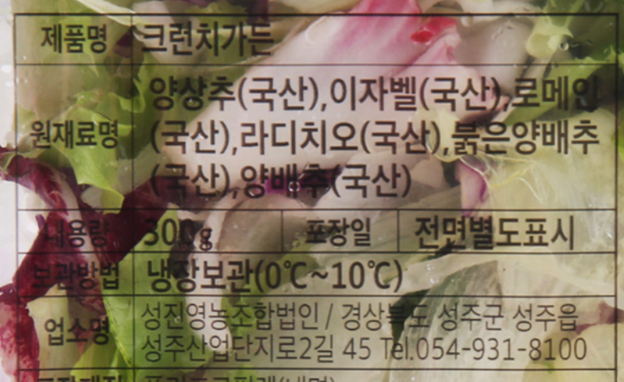 채소 구성은 양상추, 이자벨, 로메인, 라디치오, 붉은 양상추, 양배추가 듬뿍 들었다.