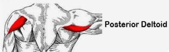 - 후면삼각근 (posterior deltoid ) – 후면 어깨, 주로 등운동에 관여한다. 행업, 풀업, 벤트 오버 레이즈시 사용된다.