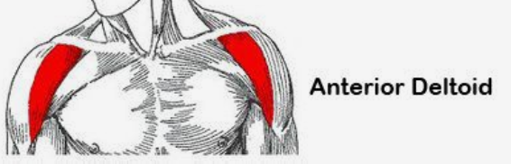 - 전면삼각근 (anterior deltoid) – 앞쪽 어깨, 팔의 회전에 관여한다. 푸시 업, 벤치 프레스 운동 시 사용된다.