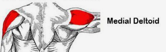 - 측면 삼각근 (medial deltoid) – 측면 어깨, 팔이 몸에서 멀어질 때 관여한다. 덤벨 사이드 레이즈 운동 시 사용된다.