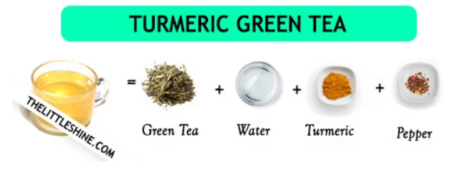 재료 : 강황가루 1티스푼, 페퍼 가루 1/2 티스푼,녹차 300ml(일반적인 차 한잔보다 2~3배 진하게 우려서 준비), 물600ml
