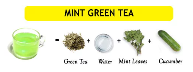 방법 : 녹차와 물은 1 : 2 비율로 준비를 하면 된다. 준비된 유리병이나 우린 녹차와 물을 부어 섞는다. 준비된 신선한 민트 잎 10-15장을 약간 으깨고, 오이 1개를 썰어서 찻물에 섞어 준다. 2시간 정도 냉장고에 넣어 재워둔다. 그대로 즐겨도 되고 필요에 따라 물을 조금 더 희석해서 마셔도 된다.