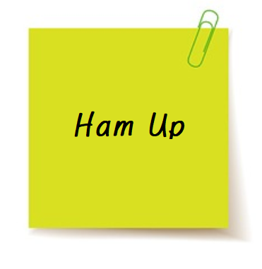 Ham Up ( Ham it Up ) : (연기자/아이들/친구들) 과장된 행동을 하다, 과장된 연기를 하다, 서투르게 과장된 연기를 하다