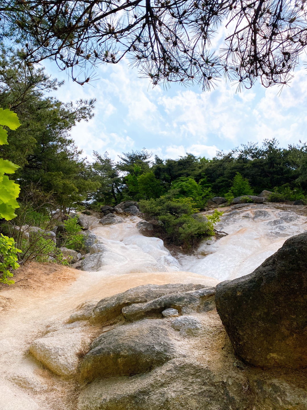 호암산 국기봉 정산에 오르기 전에 아주 넓고 멋진 암석으로 이루어진 곳이 나온다.