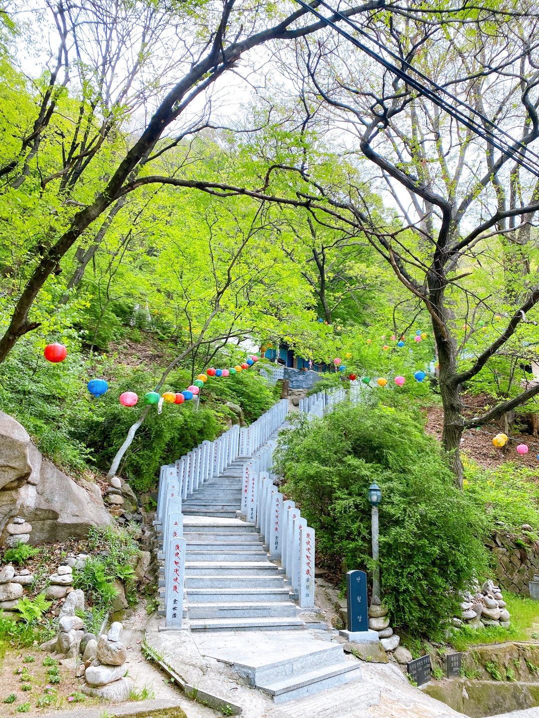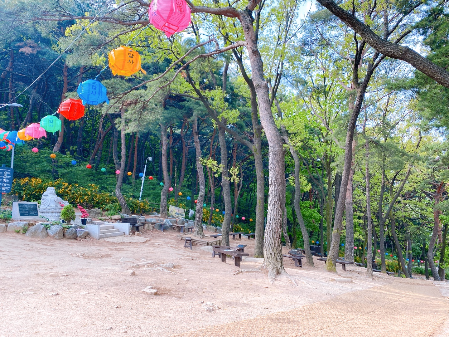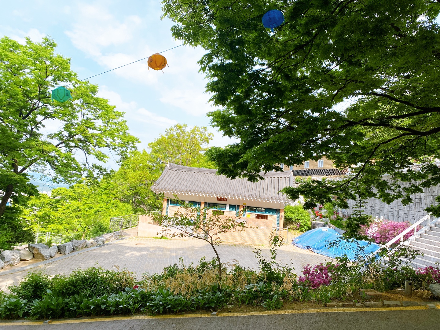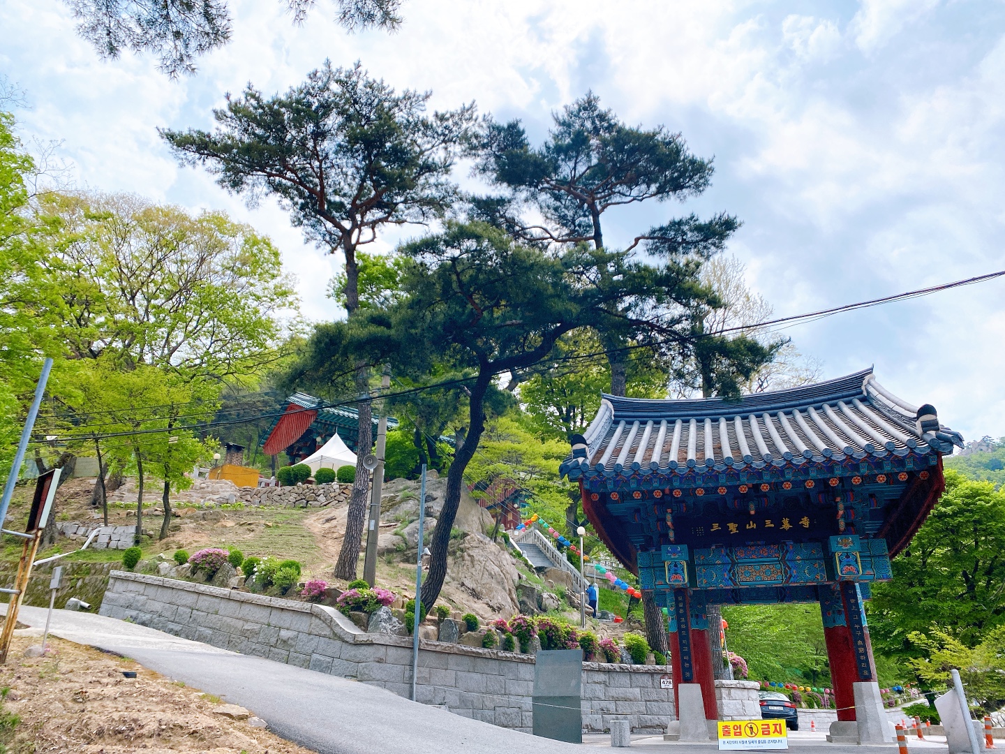 삼막사에 도착했다. 코로나로 입장은 불가하다. 호압사와 마찬가지로 부처님 오신 날 준비로 예쁘게 등들이 달려 있다.