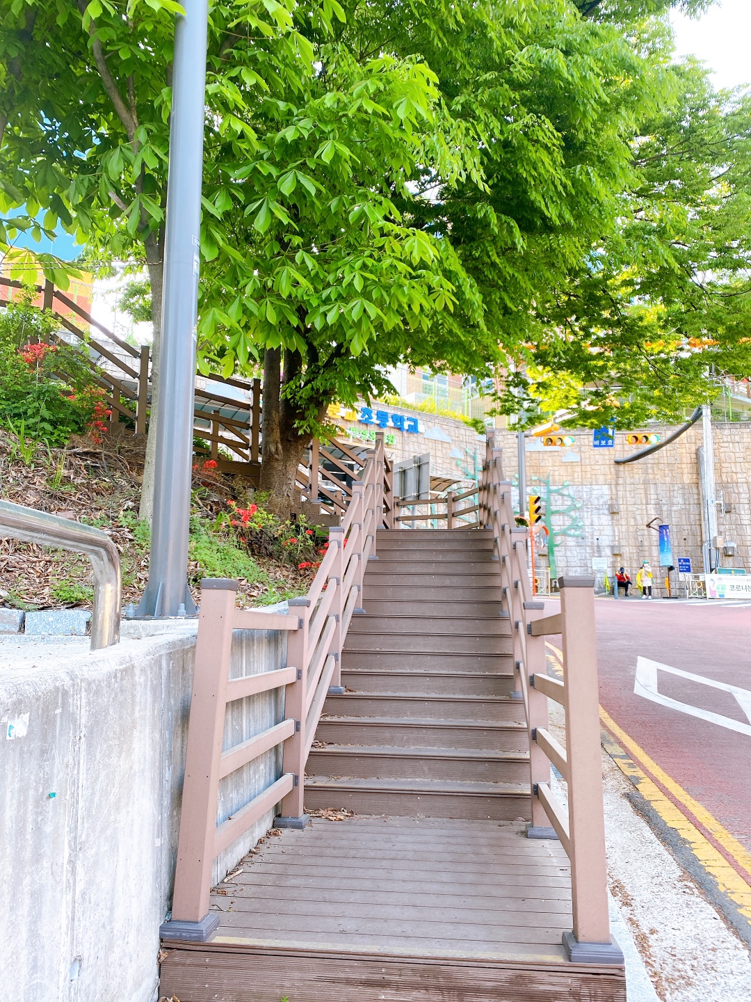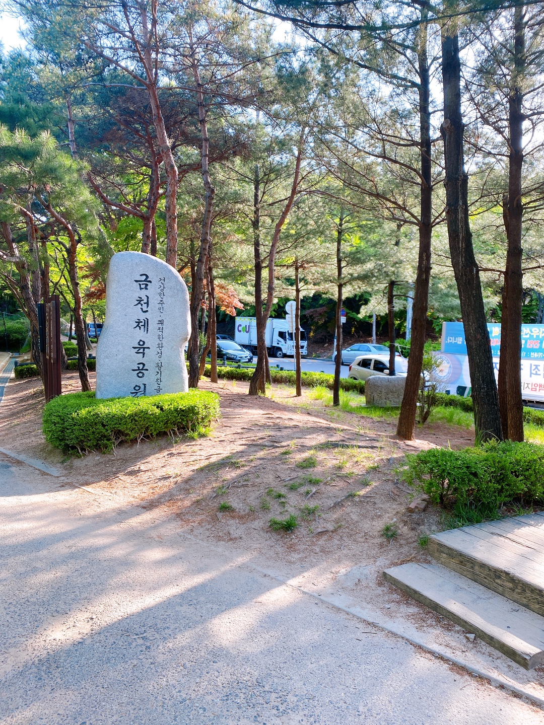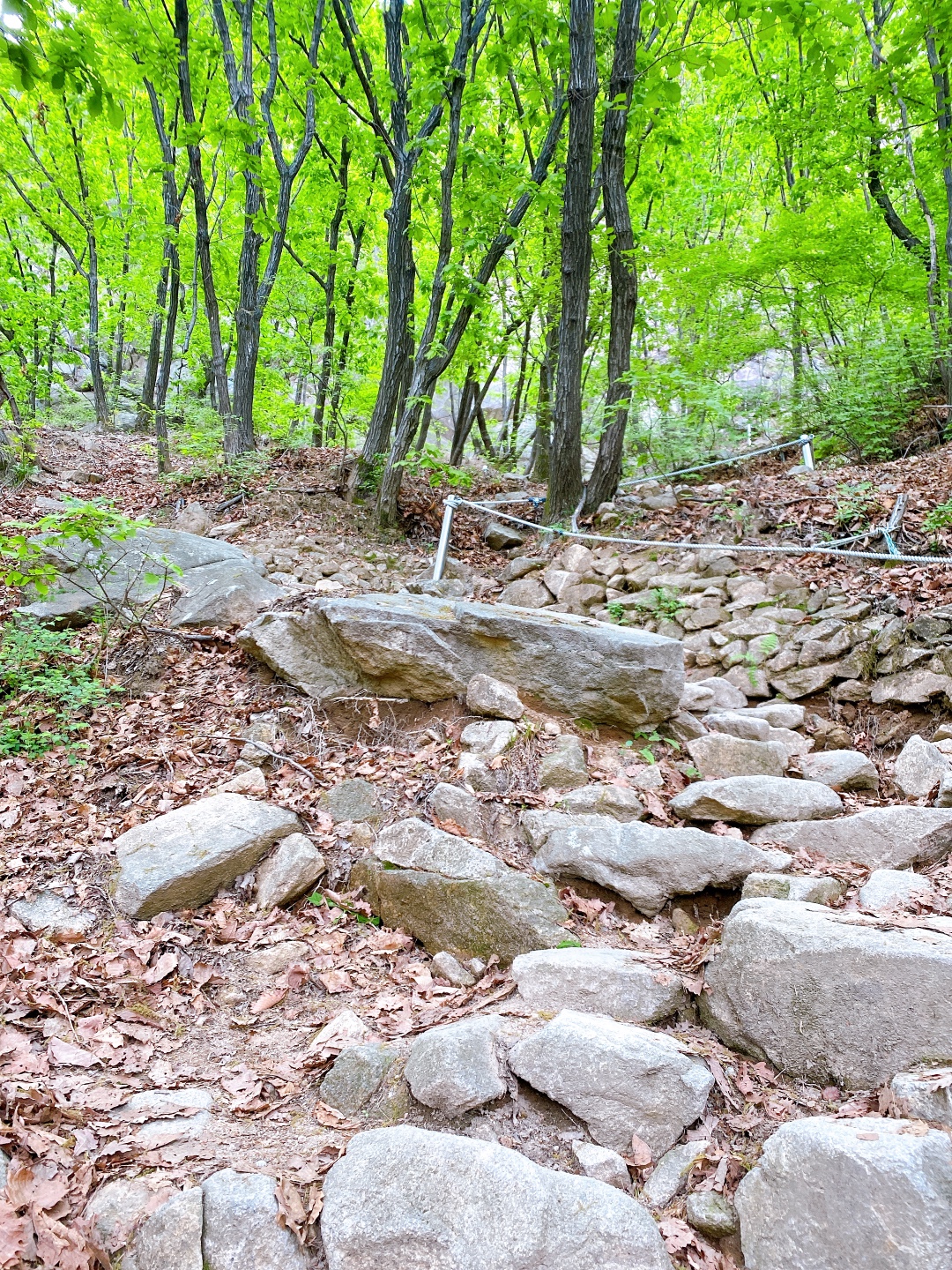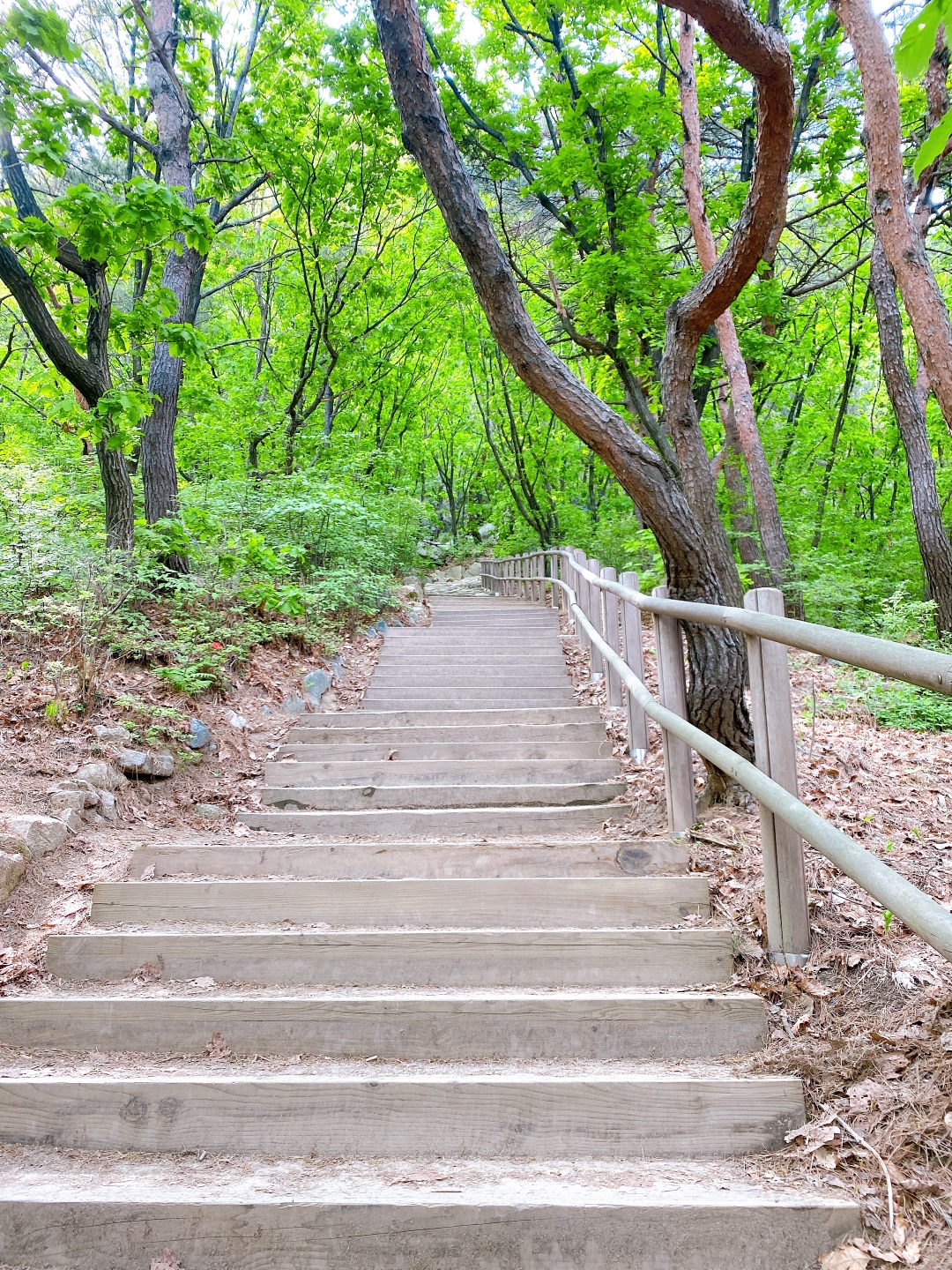 만들어둔 계단을 이용해도 되고 바로 옆쪽에 자연적인 돌길을 이용해도 된다. 자연 등산로가 운동하기엔 더 좋다고 생각한다. 길이도 조금 더 길다. 나무계단을 밟는 느낌보단 돌을 밟는 느낌이 더 좋아 난 돌길을 선택!