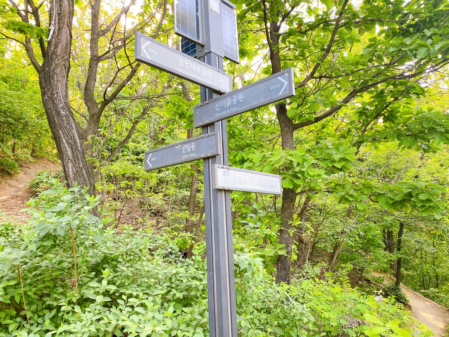 등산로 초입찾기가 초행길에서는 어려울 수 있다. 구립독산도서관쪽에서 문교초등학교 쪽방면으로 올라가다 보면 계단이 보인다. 계단을 올라가 금천 체육공원을 지나 독산 배드민턴 체육관 방면으로 쭉 따라 올라간다.