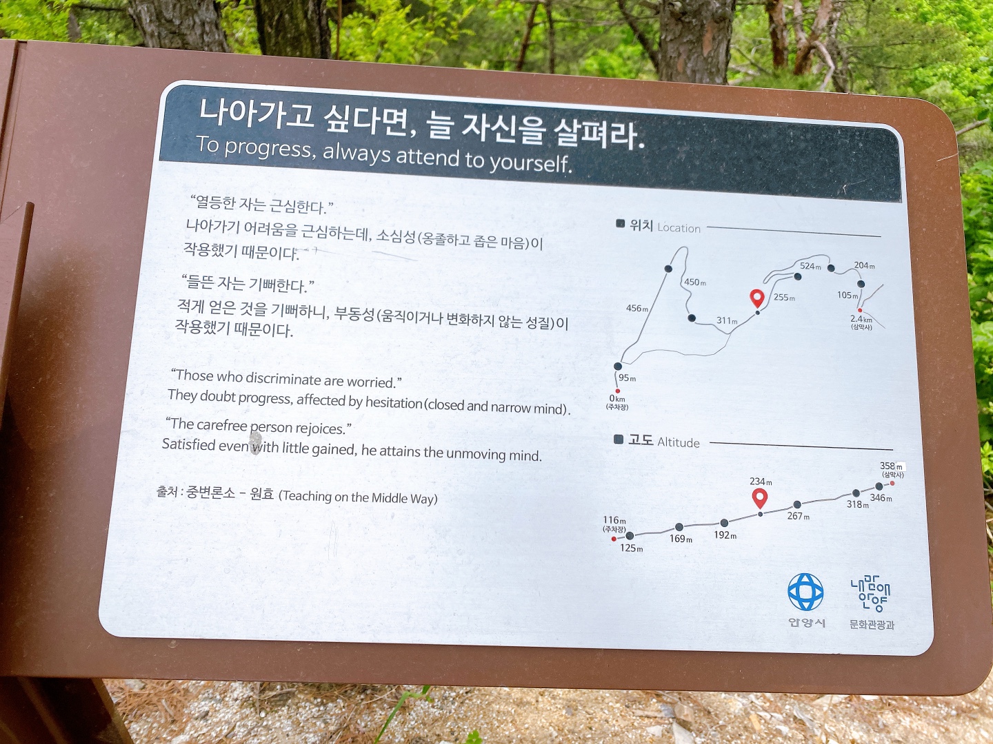 산악자전거 연습하는 사람들이 많이 찾는 거 같다. 걷는 중에 자전거 타은 사람들을 몇몇 보았는데, 경사가 높아 꽤 힘들어 보였다..... 삼막사 업힐 코스 거리는 대략 4km 정도 되는 거 같다.