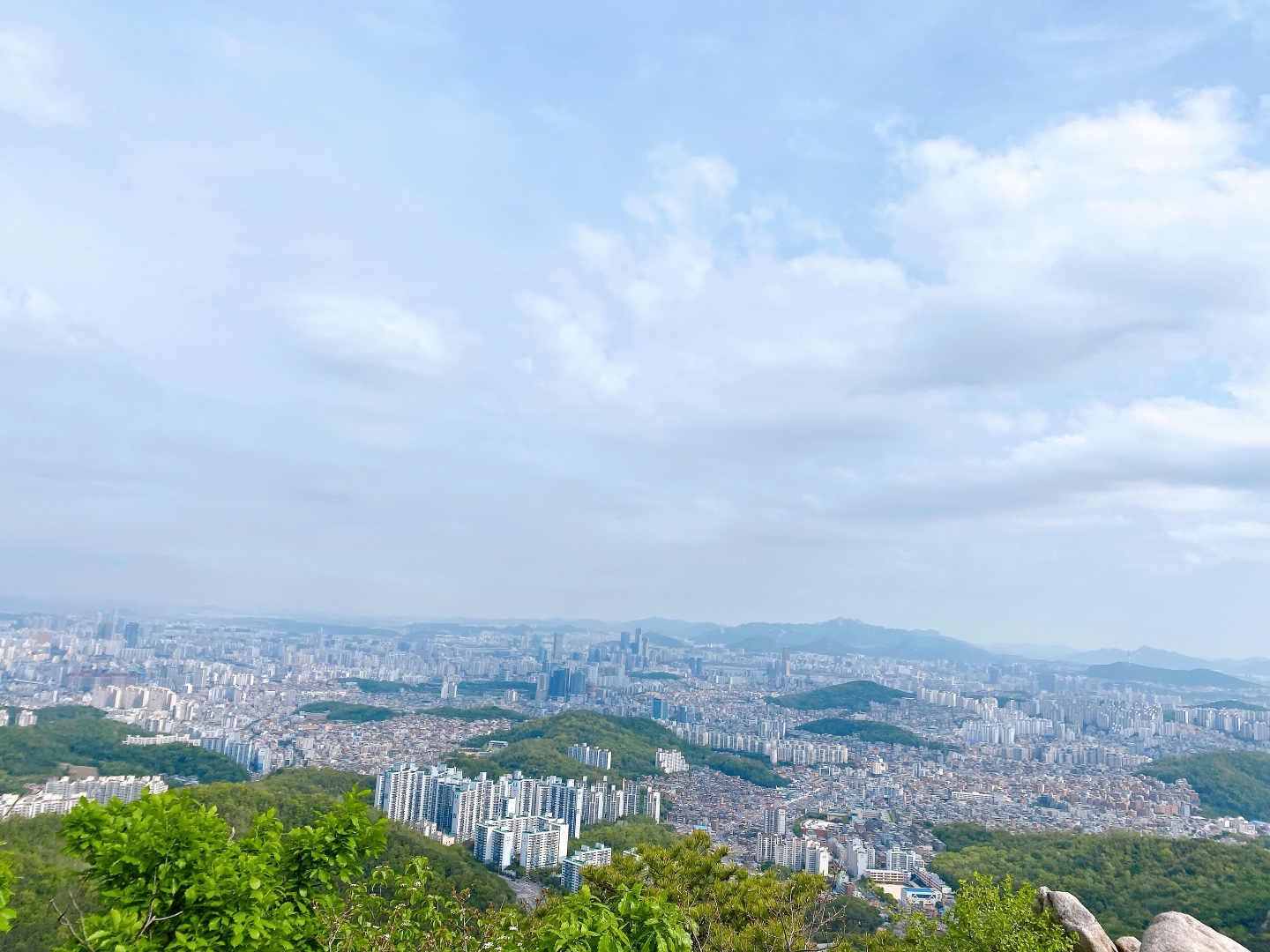 여기서는 금천구 뿐 아니라 서울시내 전체가 한눈에 보인다. 돌도 평평하게 잘되어 있어 많은 등산객들이 정상보다는 여기를 선호하더라. 도시락을 싸와서 앉아서 많이들 먹고 있다.