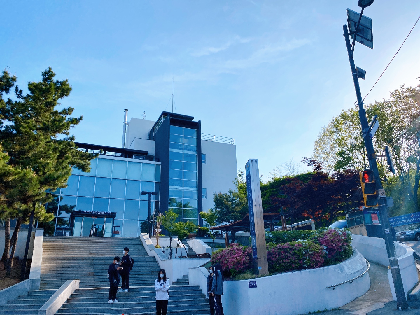 많이 걸었다. 경인 교대가 보인다. 경인교대 앞에 버스정류장이 있다. 여기서 타면 또 갈아타야 한다. 갈아타기 귀찮아서 금청구청역까지 한 번에 갈 수 있는 버스정류장까지 걷기로 했다. 검색하니 벽산아파트 5단지 앞에서 금청구청역까지 바로 가는 버스가 있다. 또 걸었다.