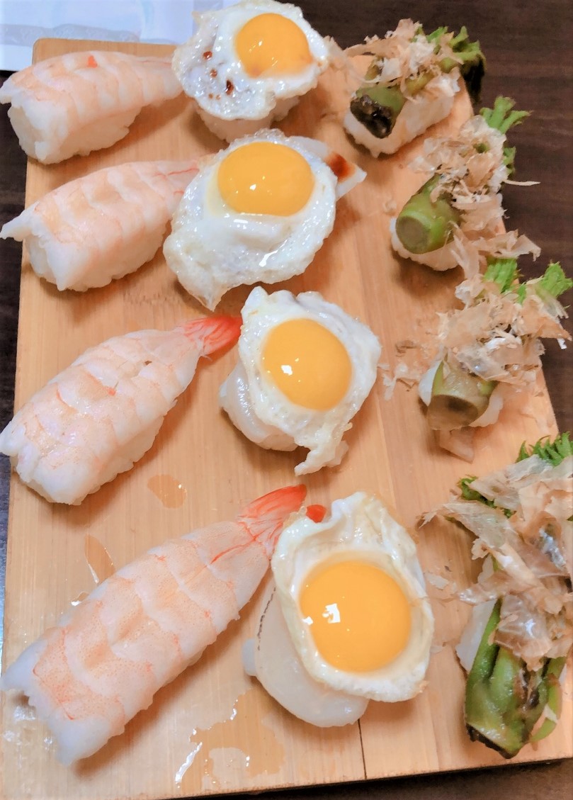 초밥 스페셜이 아니라 준 스페셜이라 초밥들은 회초밥이 아니었다. 새우초밥, 메추리알 관자 초밥, 두릅 초밥, 캘리포니아롤 등이 나왔다. 초밥을 전문적으로 맛보고 싶으면 초밥 메뉴를 따로 주문하는 게 좋을 거 같다.