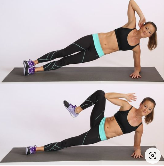 외복사근, V라인 근육 강화에 좋은 대표적인 플랭크 자세이다. 한쪽 팔과 다리를 바닥에 고정시킨 후 외복사근을 수축시킬 수 있도록 다리를 올려준다. 단, 다리를 올리는 게 중요한 게 아니다. 외복사근의 긴장을 유지한 채 외복사근의 힘으로 다리를 올려야 한다. 플랭크 자세는 복근 강화는 물론 에너지 소모가 커서 체지방 감량에도 효과적인 운동이다.