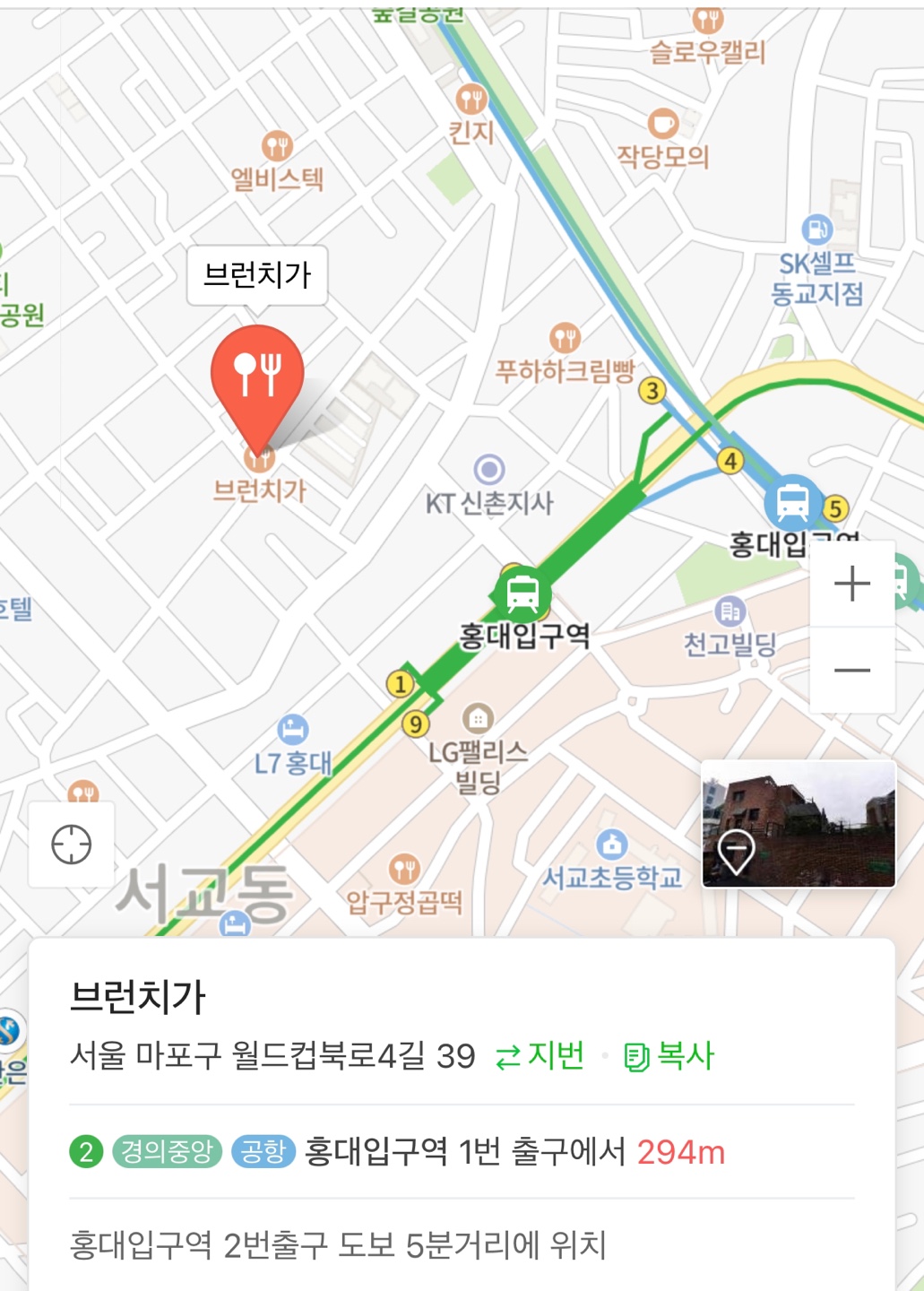 친구들이 묵은 숙소가 홍대 근처에 있었다. 브런치라도 먹이고 내려보내고 싶어 홍대 오면 와보고 싶었던 <<브런치가>>에 도착! 홍대입구역 근처에서 걸어 2분? 정도로 그렇게 멀지 않은 곳에 위치해 있다.