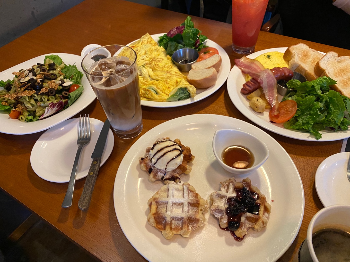 음,,, 맛음,,, 와플이 제일 맛있었다. 그리고 굳이 꼽으라면 칠리 쉬림프 치즈 빅 오믈렛을 추천하고 싶다.