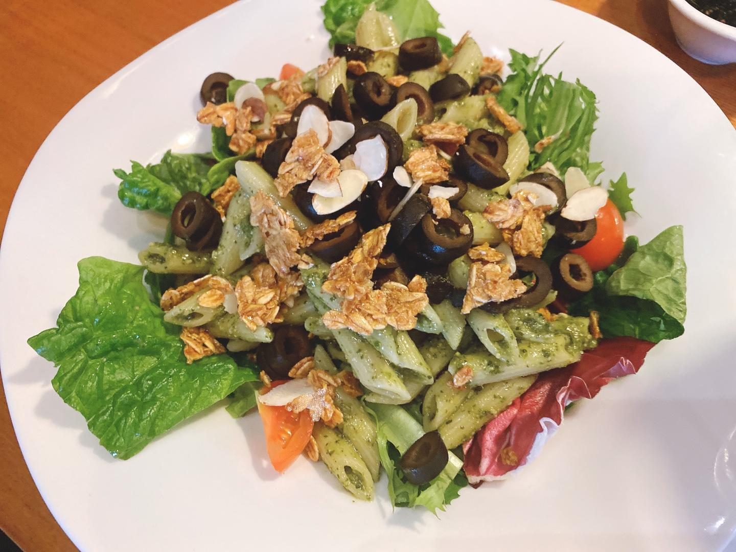 단백질 섭취를 위해 칠리 쉬림프 치즈 빅 오믈릿 과 바질 페스토 파스타 샐러드까지 주문 완료!