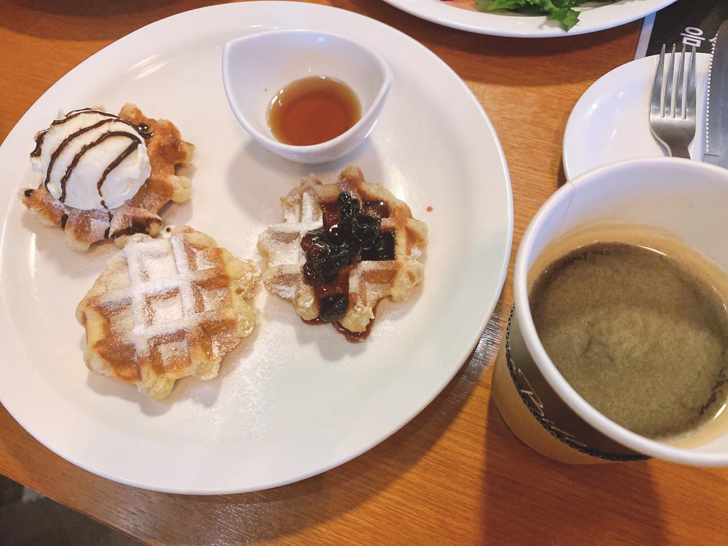 우리는 다양하게 주문했다. 우선 달달한 와플과 진하고 뜨거운 아메리카노가 마시고 싶어 와플 브런치를 주문했다.