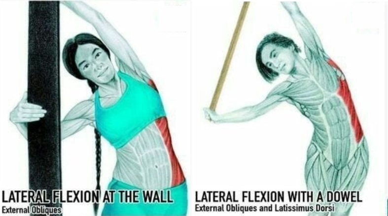 쉽게 말해 옆구리 갈비쪽 스트레칭이다. 외사근, 외복사근 , 배바깥빗근 다양하게 불린다.