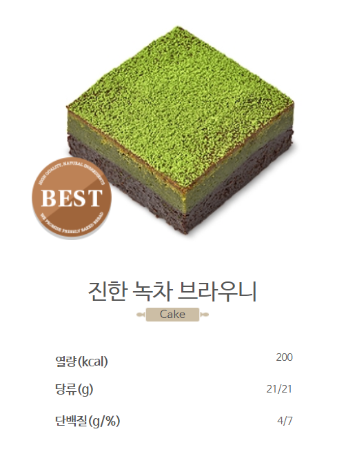 녹차와 초코의 조합은 항상 옳다. 진하고 쌉싸름한 맛의 녹차와 꾸덕한 초코가 정말 잘 어울린다. 작지만 꾸덕하고 고급진 녹차케이크 한 조각을 먹는 느낌이다. 나는 녹차를 좋아한다. 베스킨라빈스에서도 하프갤런 사이즈에 녹차만 담을 정도로 좋아한다...ㅋㅋ 녹차맛이 정말 진한 브라우니이다. 녹차를 좋아한다면 추천한다^^