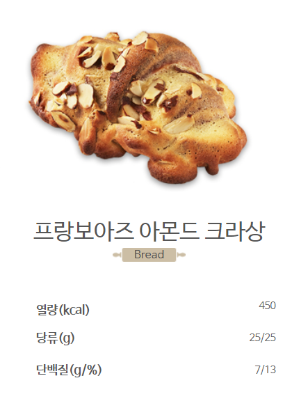 프랑보아즈 아몬드 크라상 칼로리 : 450kcal