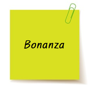 Bonanza : 노다지, 횡재, 아주 수지에 맞는 일, 신나는 일이 많이 일어 나는 것